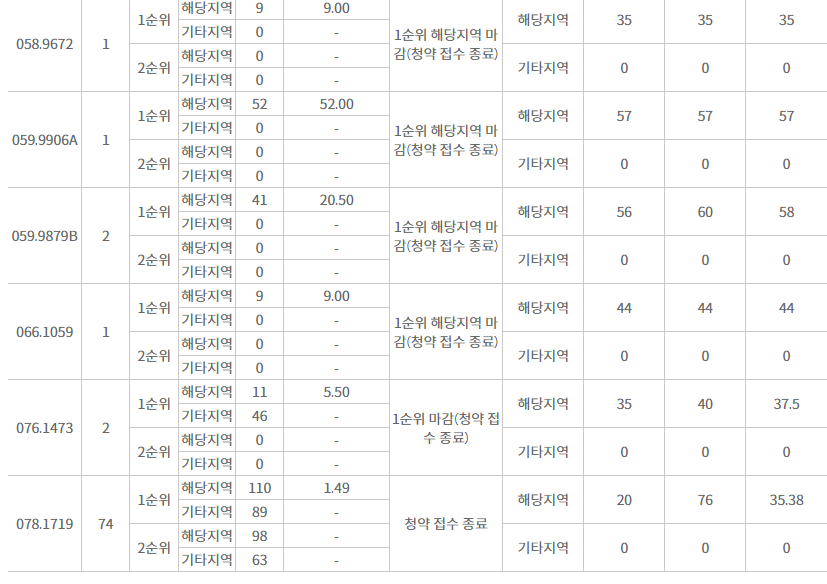 결론만 말하자면 전부 흥행실패 (예정)인 청약이다.