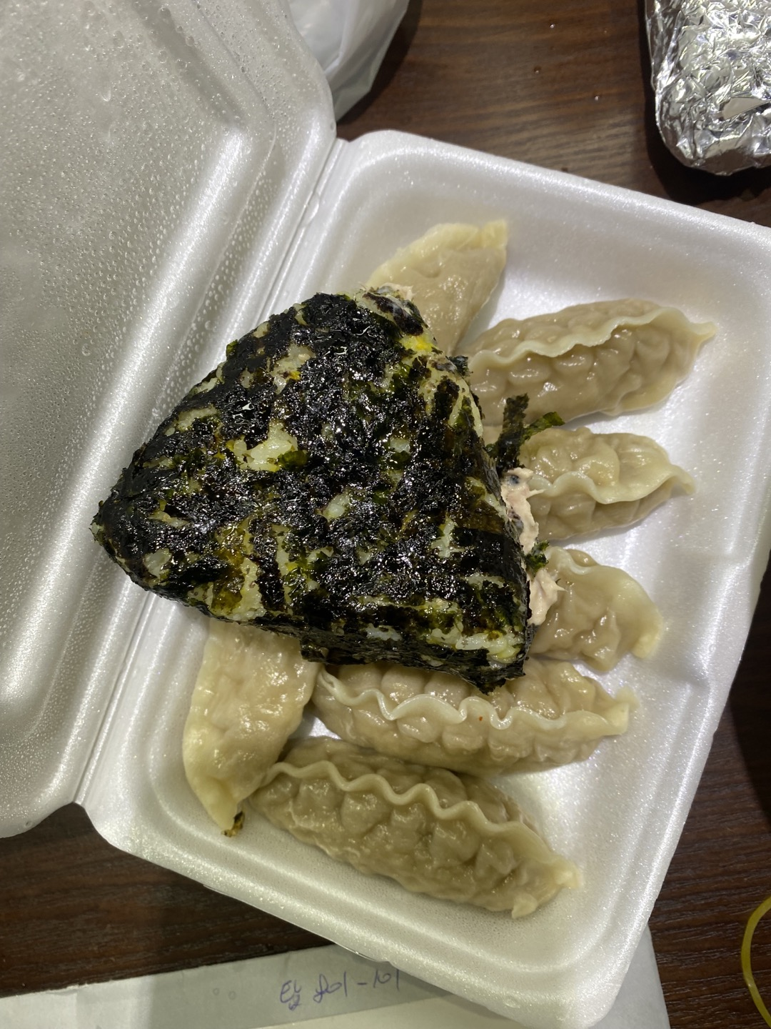 In addition, I also ordered galbi mandu (Korean- style beef dumplings) and tuna kimbap (rice rolls), both of which were very delicious. The galbi mandu were filled with juicy meat, and the tuna kimbap had fresh ingredients and the perfect seasoning. What's more, I was surprised at how cheap they were.
